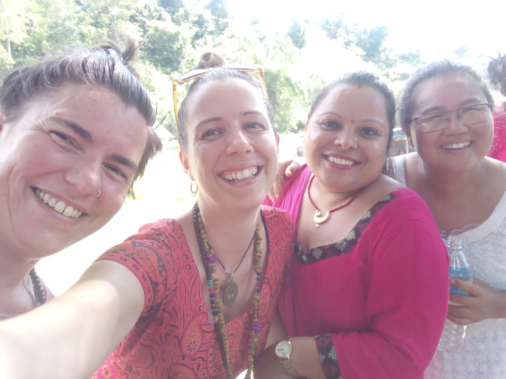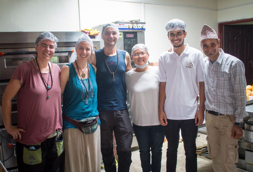Nuestra semana empezó con un descanso de tres días, cuidándonos como personitas y como grupo que somos. En ese espacio, también hubo oportunidad para el reencuentro: el segundo día, al atardecer, nos encontramos con Kavita a orillas del lago Phewa Tal. Le acompañaba Yanish, su hijo de 2 años y medio. Durante 4 años nos hemos reunido una vez al mes en formato online… algo que ha permitido seguir con nuestro trabajo conjunto, pero nada puede compensar compartir juntas el mismo espacio. Toda la familia de Kavita está bien, ella incluida. Es fácil ver cómo tener un hijo le ha cambiado la vida y cómo estos años de pandemia y crisis económica le han motivado a buscar ingresos alternativos. Ahora regenta, junto a su sobrino, una pastelería en Hemja, pueblo estratégicamente situado entre Pokhara y Annapurna Eco-Village. Unos días más tarde visitamos el lugar “Biyan Bakery”, que Kavita nos mostró con el orgullo de ver materializada su idea y de contar con el apoyo de toda la familia. Bidan, que era un niño cuando le conocimos, también nos recibe. Sonriente y visiblemente satisfecho, nos cuenta que cambió radicalmente sus planes de salir a estudiar al extranjero para quedarse en Nepal y montarse un pequeño negocio. Es lo que tiene tener unos mínimos apoyos para empezar a emprender.