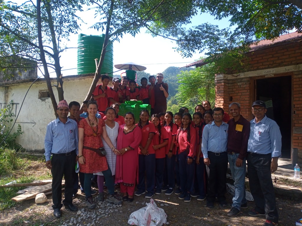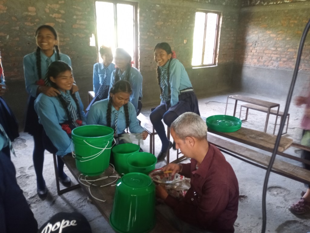 El proceso tiene varias etapas que nos repartimos. Mientras los miembros de la comunidad y el equipo docente crean los cimientos para la estructura, Hamro Pratisthan, nosotras y el alumnado vamos preparando lo que será el sistema de filtración de agua.
