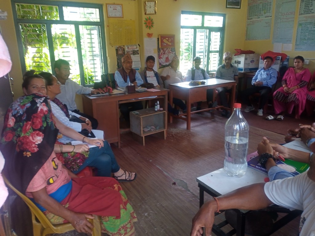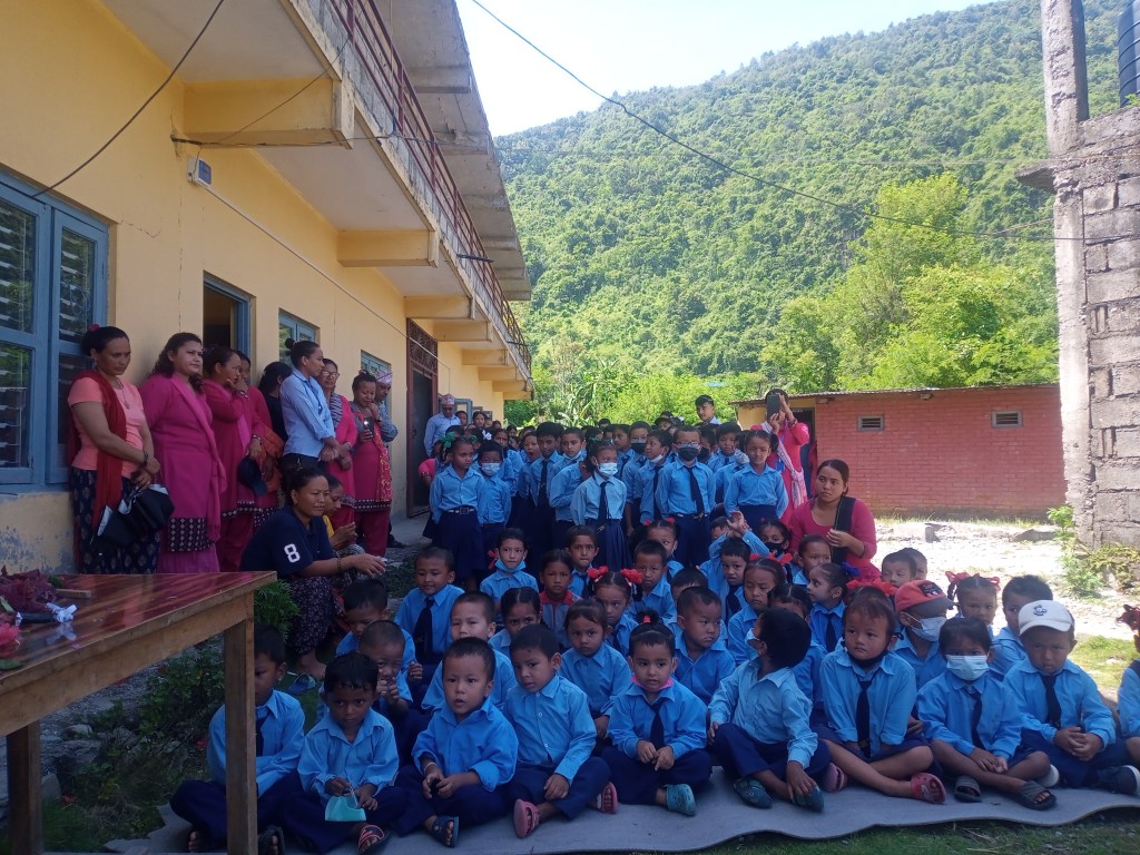 La mañana siguiente visitamos la escuela de Shree Baljyoti. Dejamos a un lado la motivación baja y las muchas preguntas, y nos abrimos al cariñoso recibimiento por parte de la comunidad educativa. Hace 9 años que llegamos aquí por primera vez y hoy nos vuelven a llenar las manos de flores. Alumnado, profesorado, comité educativo y comité de familias están todas presentes, nos dedicamos algunas palabras y aplaudimos. No nos acabamos de sentir merecedoras de tanta gratitud: con el COVID y la transición TAI-AMA, tuvimos que reducir al mínimo nuestra colaboración y tan sólo se han mantenido las becas educativas. Seguimos expectantes. Tras la celebración inicial, pasamos a una reunión más formal que nos ayuda a dar la vuelta a nuestra desmotivación. Dedican la reunión a repasar toda la colaboración de los últimos años, a celebrar todos los éxitos, cambios y aprendizajes y a remarcar que, gracias a todo ello, ahora se sienten plenamente preparadas para seguir adelante de manera autónoma. Es la noticia que toda entidad dedicada a la cooperación internacional quiere escuchar.